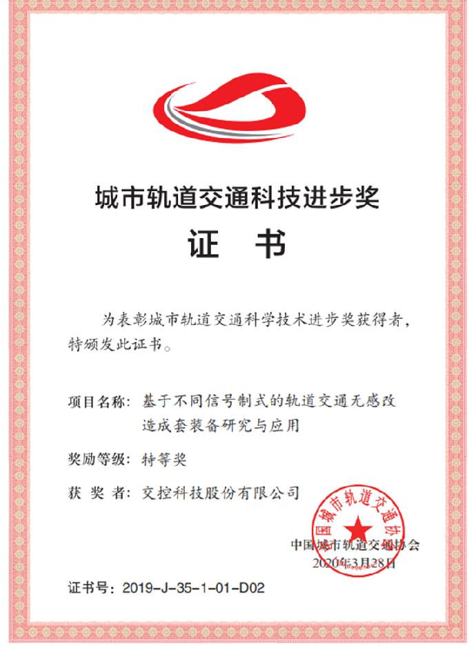 2020年3月28日,在2019年城市轨道交通科技进步奖评选中,北京市地铁运营有限公司、交控科技股份有限公司、北京交通大学凭借共同完成的《基于不同信号制式的轨道交通无感改造成套装备研究与应用》(以下简称“无感改造”)经过中国城市轨道交通协会专家多轮评审,从众多成果中脱颖而出,获得“2019 年度城市轨道交通科技进步奖”特等奖。