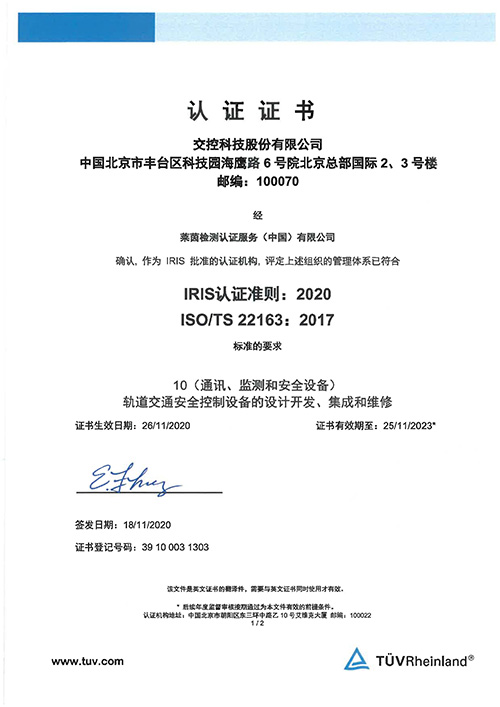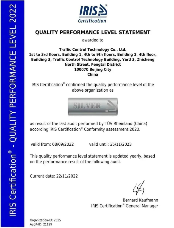 欧洲铁路行业协会 (UNIFE)IRIS管理中心(IMC),IRIS体系银牌