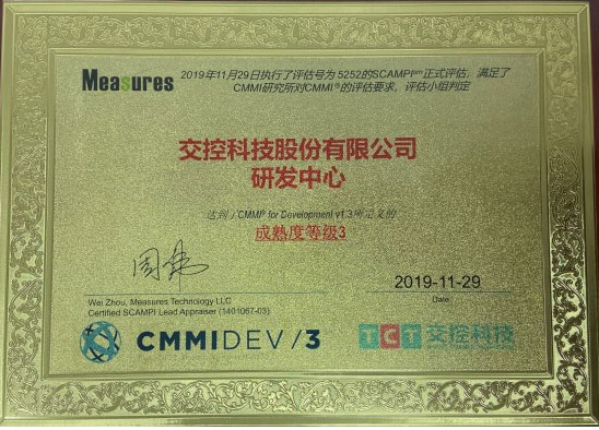 公司通过了CMMI成熟度三级评定