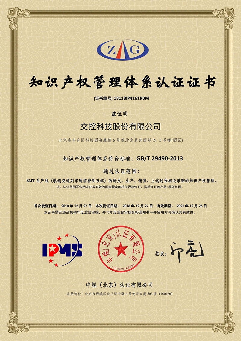 公司通过了GB/T 29490-2013知识产权管理体系认证