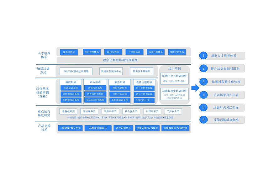 国家及地方政府高度重视,出台系列政策文件支持轨道交通职业技能培训。同时,产品设计严格遵循《国家职业技能标准-城市轨道交通服务员等》以及运营安全、管理规范等国家和行业标准,保障培训内容科学规范。